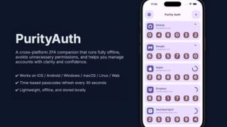 ソフトウェア オフラインで動作するオープンソースのクロスプラットフォーム対応2FA認証アプリ・「PurityAuth」