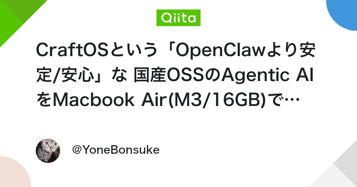 CraftOSという「OpenClawより安定/安心」な 国産OSSのAgentic AI をMacbook Air(M3/16GB)で動してみる - Qiita