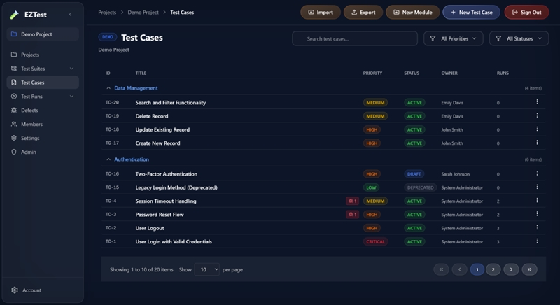 EZTestはTestRailやTestinyなどの代替として開発されたシンプルに使えるオープンソースの軽量テスト管理ツールです。