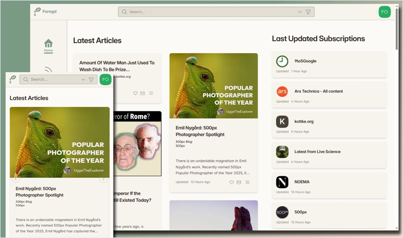 Foragdはコンテンツ購読を重視したオープンソースのフィードリーダーWebアプリです。RSSやATOMなどを登録して1か所にキュレーションするオンラインフィードリーダーとして開発されています。