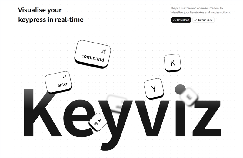 Keyvizはキーストロークやマウス操作をリアルタイムで視覚化するオープンソースのデスクトップアプリです。Windows及びMacOS、条件付きでLinuxがサポートされています。