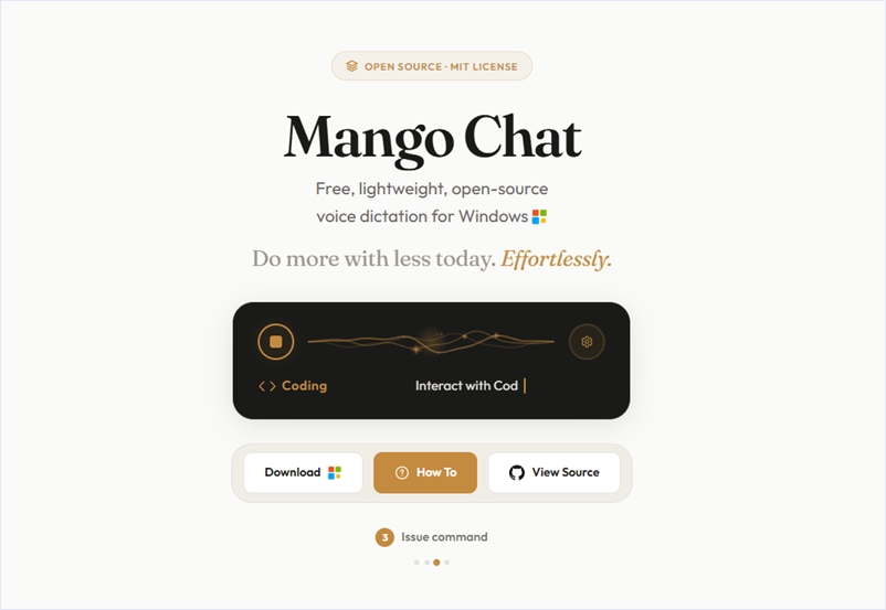 Mango ChatはオープンソースのWindows向け軽量音声ディクテーションです。Rust + eguiで書かれており少ないメモりでSTT(speech-to-text)を利用できます。非Macユーザー向けに開発したそう。