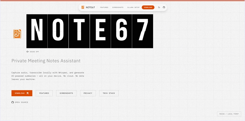 note67はAIによる文字起こしと要約が可能なローカルファーストなオープンソースのプライベート会議記録アシスタントです。よくあるWhisperを使用したAI文字起こしアプリですがローカルで実行されるよう設計されています。
