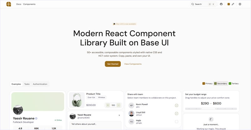 同じフレームワークを使えば同じようなWebページが量産されるのは過去にも幾度となくありましたが、今はどこもかしこもTailwindやshadcn/uiとなっており、うんざりしている方も少なく無いかもしれませんが、Olyx UIの開発者もその1人のようで、このような脱Tailwindが出来るフレームワークをデザインしているみたいです。