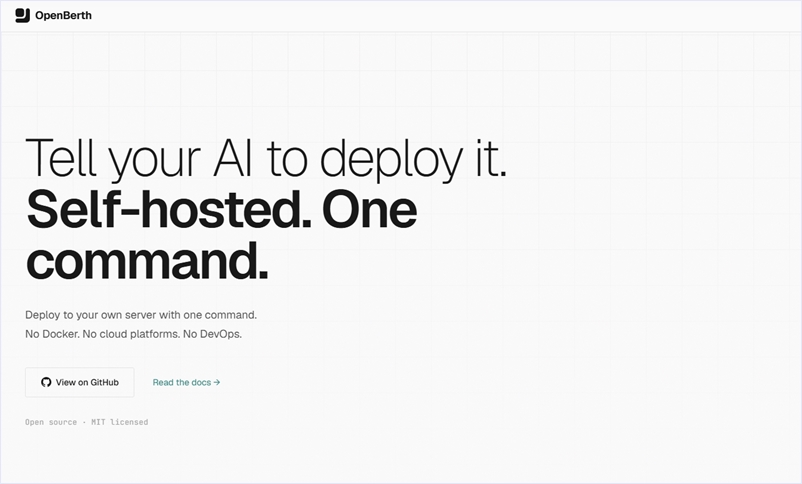 OpenBerthはNode.js 、Python 、Go等もサポートされたオープンソースのAIアシスタント付きセルフホスト型デプロイプラットフォームです。