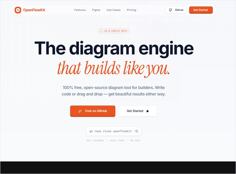 大きな特徴はテキストから作図できるMermaid.jsで開発者向けにも使いやすいようになっている事、AI(Gemini)によるプロンプトでの作図が可能な事、Figmaにプラグイン不要で直接作図コードを貼り付けて編集もできる事、そして「ホワイトラベル」である事が明示されています。