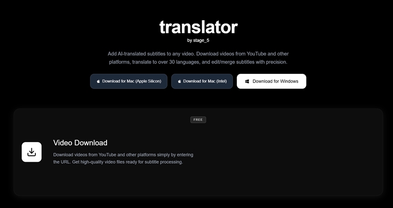 Translatorは任意の動画の文字起こしと他言語化された翻訳ファイルをAIで生成するOSSです。Electronベースのデスクトップアプリとして提供されており、Windows及びMacOSがサポートされています。