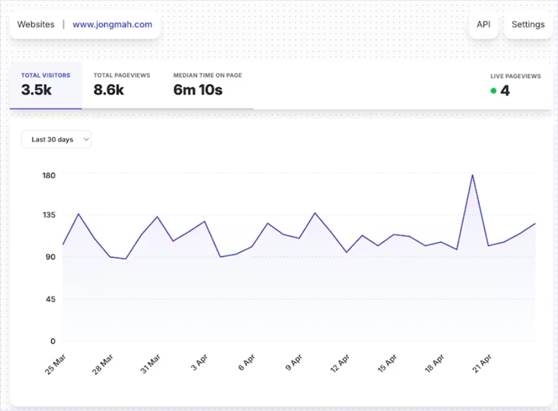 シンプルに使えつつ、GDPRに準拠しておりcookieを使わず個人も特定しないなど、プライバシー保護に配慮した設計となっています。既存の多くの分析ツールは広告収入を主目的としたプラットフォームに合わせてデザインされていますが、単純に管理するWebサイトのアクセスやリファラ、どのページが人気なのか、どの国で見られているかなどで、知りたいことはそう多くありません。