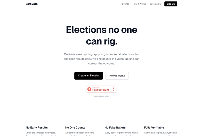ZeroVoteは暗号化を使用して不正を防ぐオープンソースのオンライン選挙システムです。単純なシステムではなく複合的な不正防止策を講じた投票システムで不正投票を防ぐ、というもの。